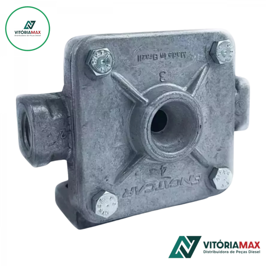 Aplicação: Utilizada no circuito de freio a ar, acelerando a exaustão do ar nas câmaras de freio de serviço e emergência.